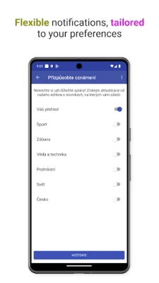 Select your favorite news sources like iDnes.cz, Seznam Zprávy, Česká televize, Novinky.cz, and more.