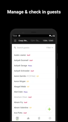 Search & manage tens of thousands of guests by name, guest list and custom fields at impressive speeds and ease of use.