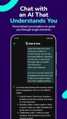 - 🧠 Supportive Conversations – Talk freely about your thoughts and feelings. Hear & Now listens attentively and offers gentle reflections and guidance.