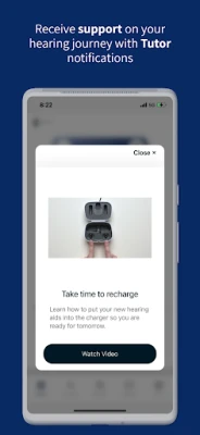 Confidently manage the day-to-day maintenance of your hearing aids with the help of Tutor, your virtual hearing aid guide that delivers helpful instructions, videos, reminders, and tips straight to your smartphone.