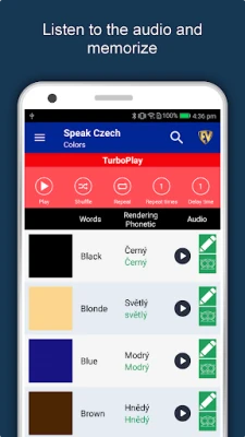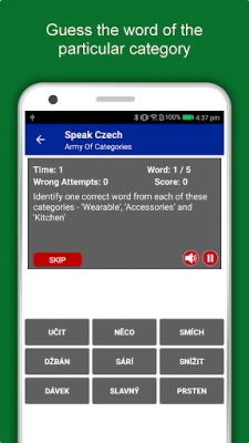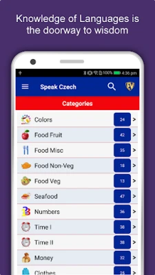 The offline Czech learning app has 2,135 words with 55 categories. It contains pronunciation, images and phonetics of words for easy learning. Switch base language, Save learnings in EduBank℠, audio play, Potpourri and retention games are the main features of Speak Czech app.