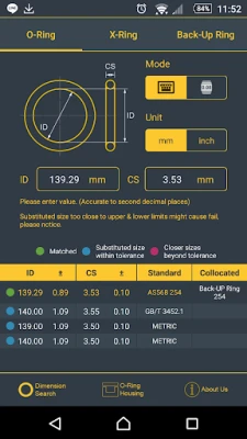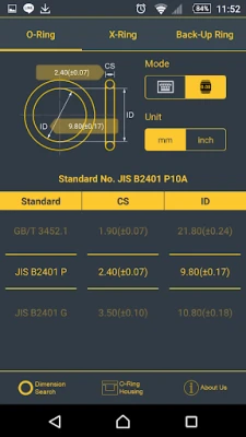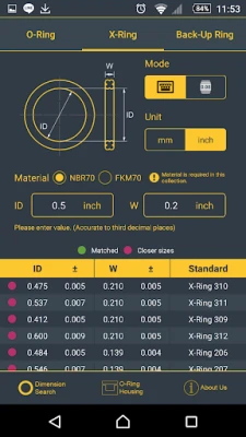 In addition to O-Ring sizes, it also includes the search functions of X-Ring and Back-Up Ring.