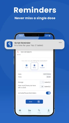 ⏰ Medication Reminders: Never miss a dose again! Script sends you gentle reminders, aligning perfectly with your doctor's recommendations, so you can stay on top of your health journey.