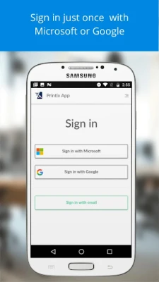 * Sign in once with Microsoft (Azure AD/Office 365), Google Workspace, Okta, OneLogin or your Printix account.