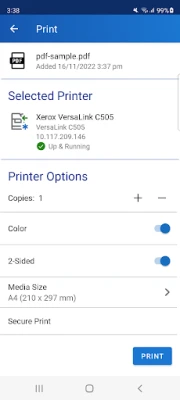 The Xerox® Workplace mobile app enables simple local printing and scanning with your Xerox MFP. When used in conjunction with Xerox® Workplace Cloud / Suite (www.Xerox.com/mobile), it further allows users to connect in a controlled secure way from any anywhere, to any device over any network (without direct printer connection.)