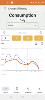 The energy meter enables you to record your energy meter readings and track your consumption over time. The energy meter allows you to benchmark your consumption with other users within and across sectors. It allows you to view your consumption in graphical mode daily, weekly, monthly and quarterly with an additional feature to download your consumption data for further analysis of choice.